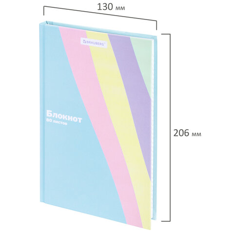 Внутренний блок выполнен из офсета белого цвета плотностью 60 г/м2 и крепится к обложке с помощью книжного переплета. Формат блокнота А5 (134х206 мм) позволит владельцу поместить его в кейс или сумку малых габаритов.