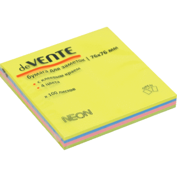 Клейкая бумага для заметок “deVENTE” 76×76 мм, 100 листов, офсет 75 г/м², 4 неоновых цвета
